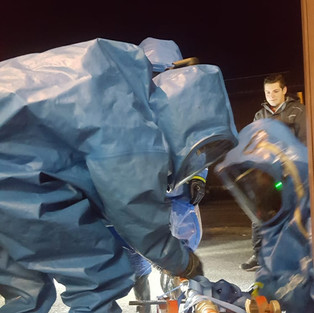 Bei der Übung mussten diverse Aufgabenstellungen im Schutzanzug absolviert werden, wie beispielsweise das Abdichten einer undichten Leitung oder diverse Bewegungsübungen.